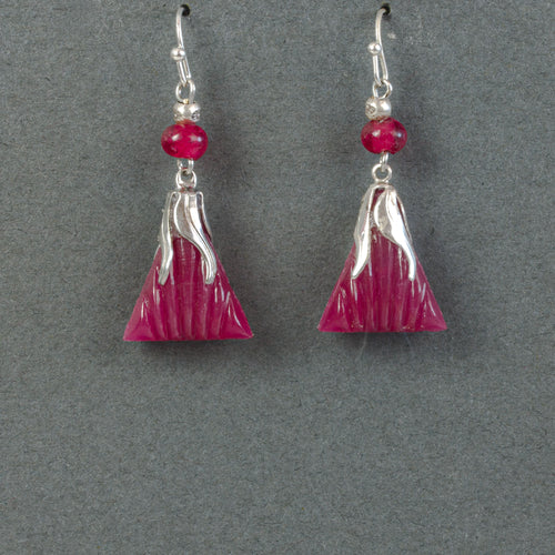 Art Deco Bohemian fuscia glass triangle earrings. j-erbg910