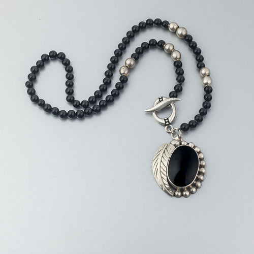 Vintage Mexican silver and black onyx pendant necklace. nlvs753