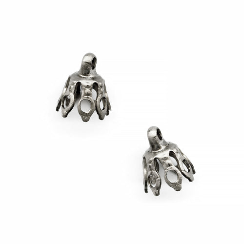 Silver plated brass up-eye bead cap. 8x7mm. Pkg of 4. B9-2291s