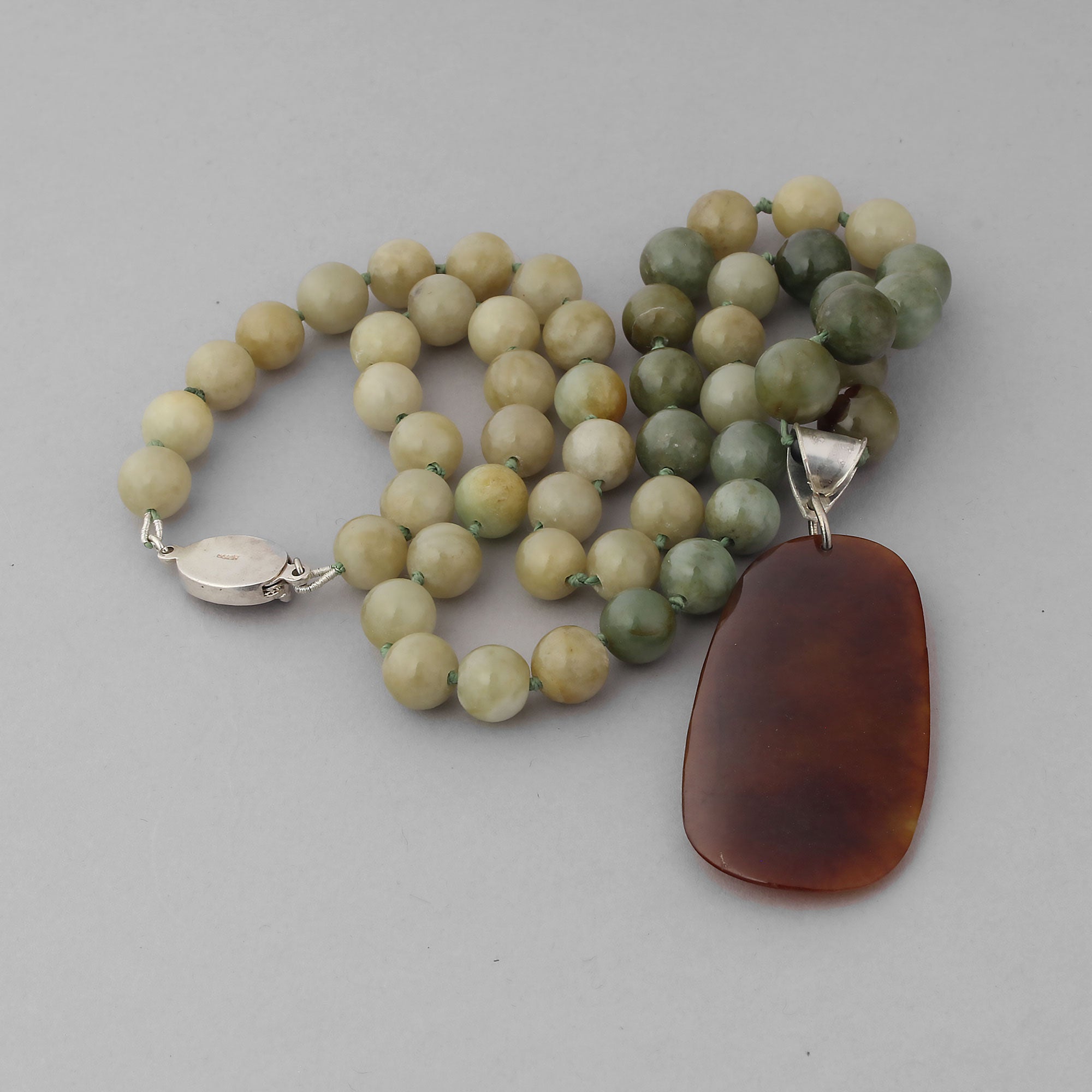 Natural jadeite beaded necklace with finely carved dragon pendant necklace. 22 inches. nlja921