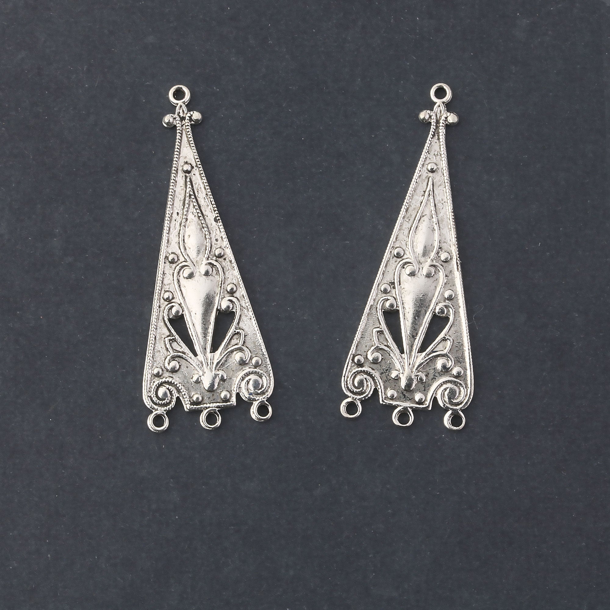 Stamped silver plated brass 1 to 3 ring chandelier pendant or connector. Smooth back and beautiful ornamental front. Measures 35x13mm. Package of 2.