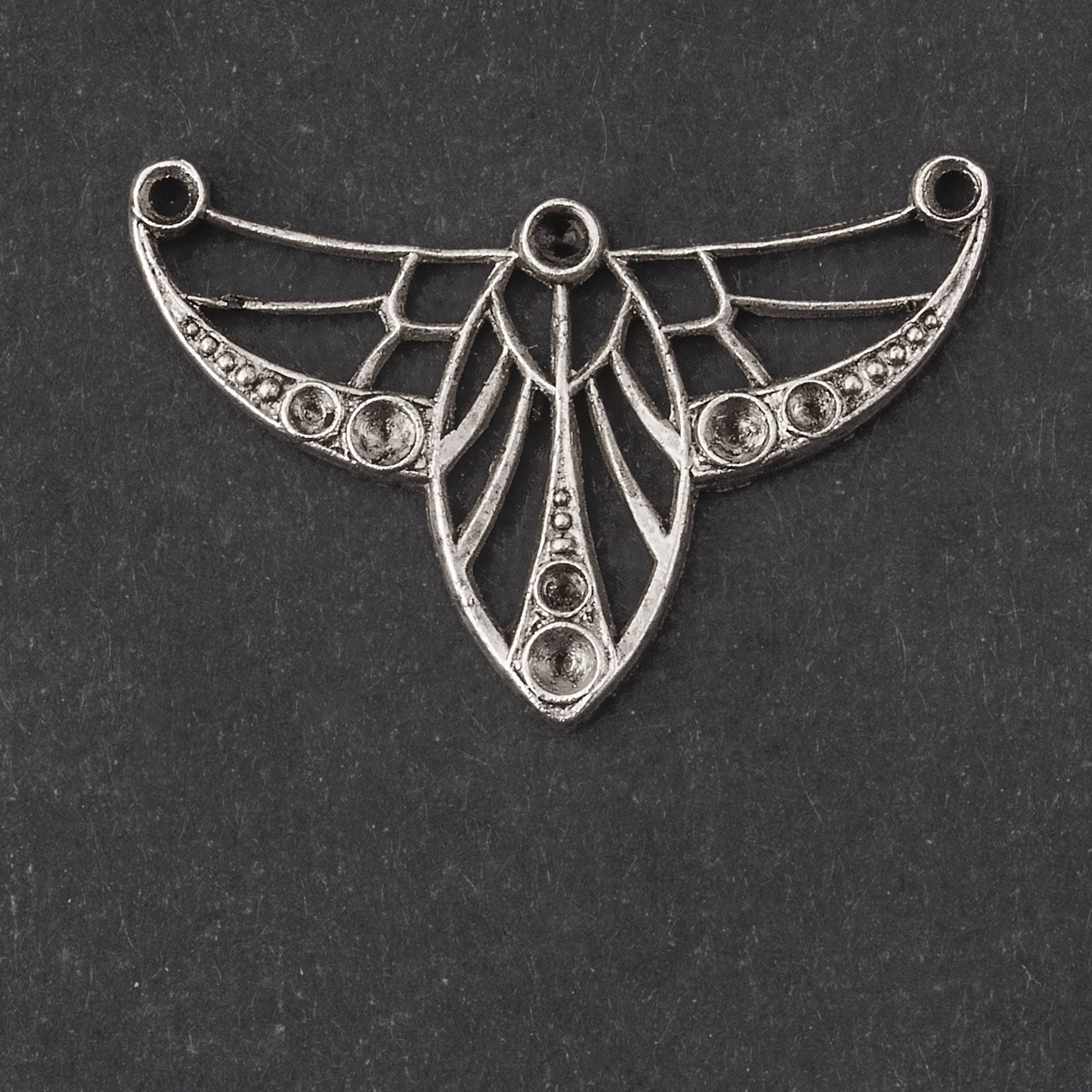 Vintage silver plated brass Art Nouveau style 2-ring pendant with rhinestone settings . Takes 1 8pp stone and 2 10pp stone. 27x18mm. Sold individually,
