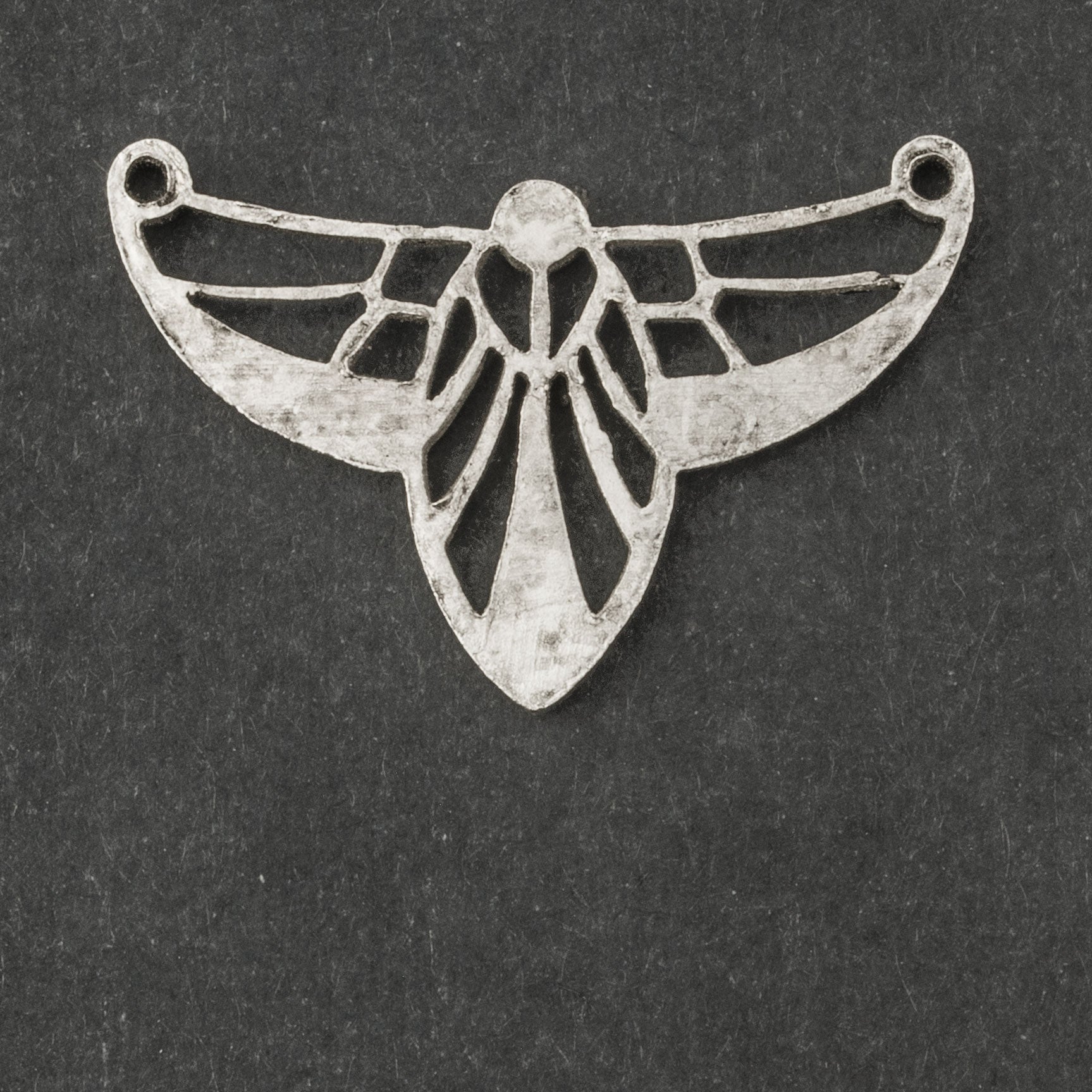 Vintage silver plated solid brass Art Nouveau style 2-ring pendant with rhinestone settings . 27x18mm. Sold individually, b9-2429s