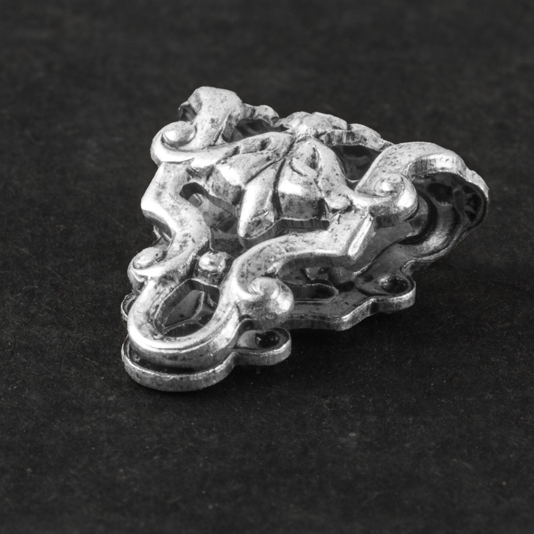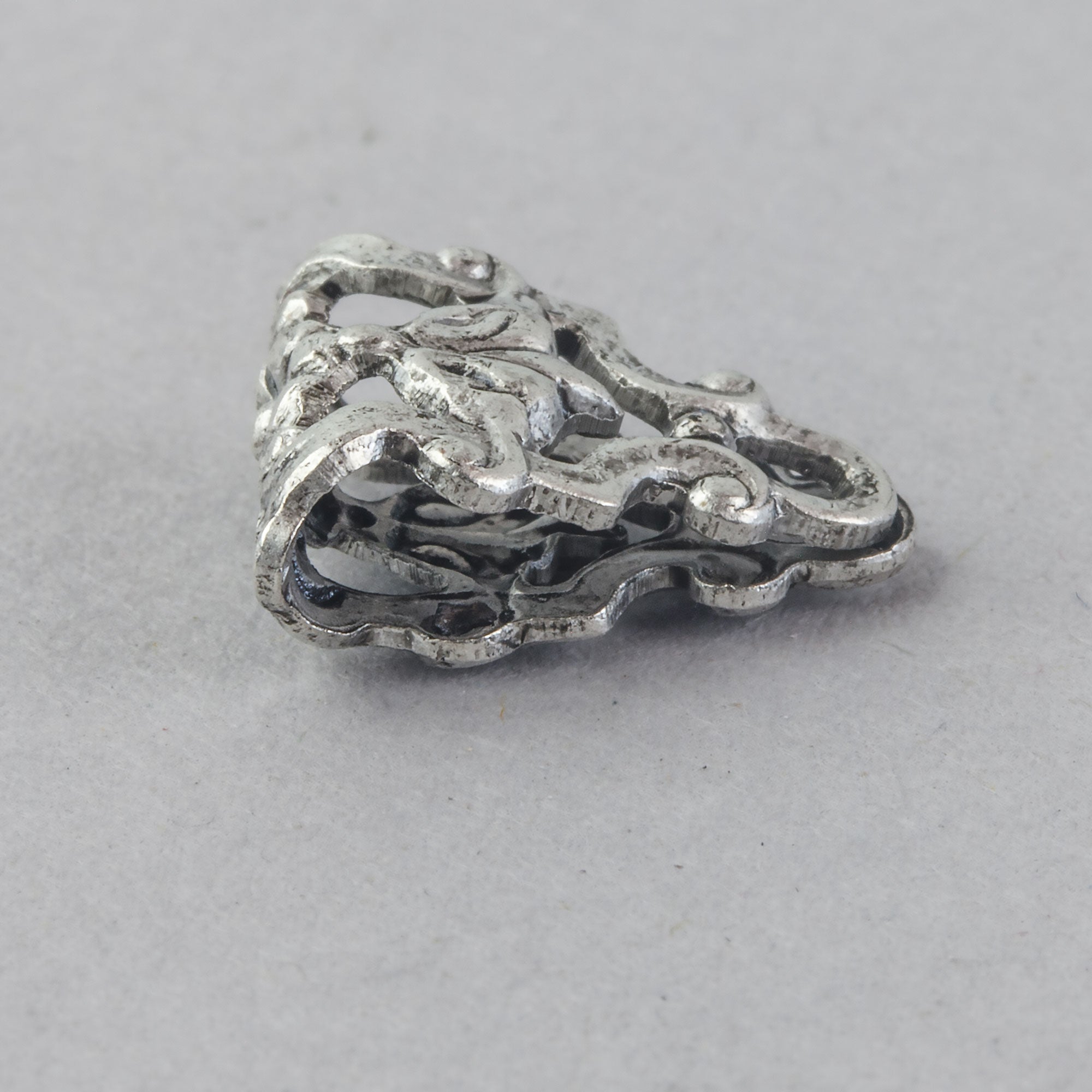 Antique silver plated brass filigree bail. This bail is folded and can be used for hanging a glass ring. Or use an oval jump ring to connect a pendant and then thread your chain or velvet ribbon through the folded over bail. Measures 22mm tall and 12mm wide at the fold. The bail has been perfectly folded by the manufacturer.