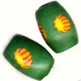 Contemporary Czech hand made bead, intense grass green with yellow and red millefiore. 12x9mm. Pkg of 2