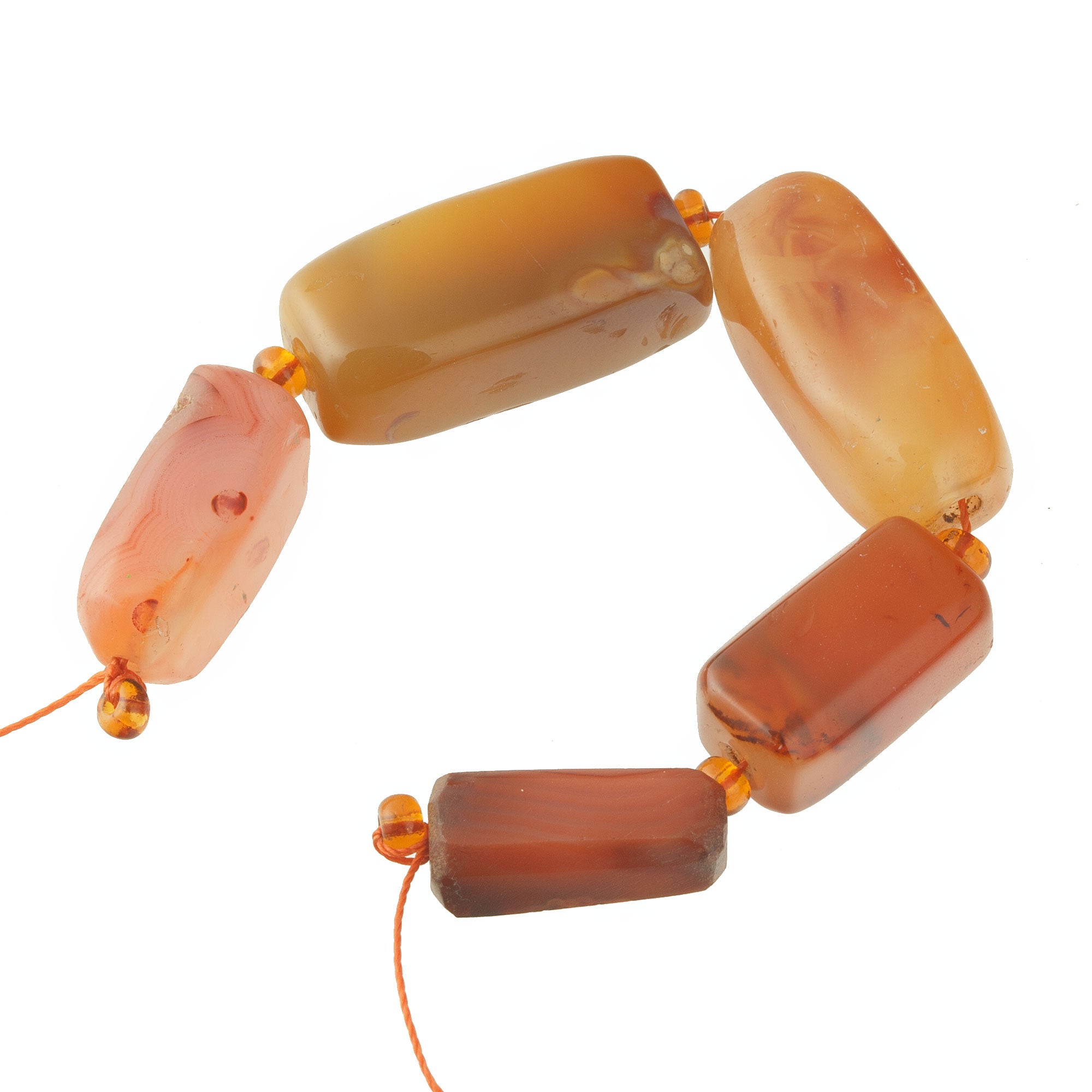 Old agate and carnelian beads, rectangular, peach, pink, honey. 1 Str. 5 beads. B4-aga286